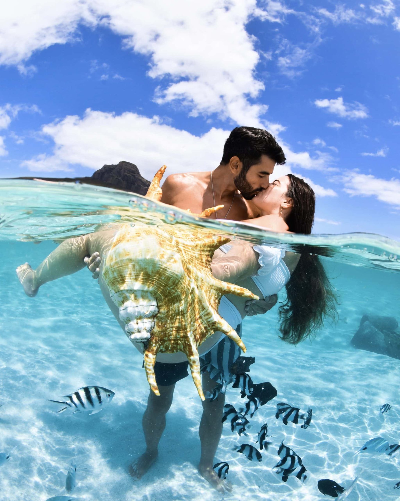 We can still capture great photos even if you’re not entirely comfortable in the water by shooting in shallow waters. Additionally, we combine underwater shots and aerial photography to add diversity to the session and provide you with high-quality, professionally edited photographs.
