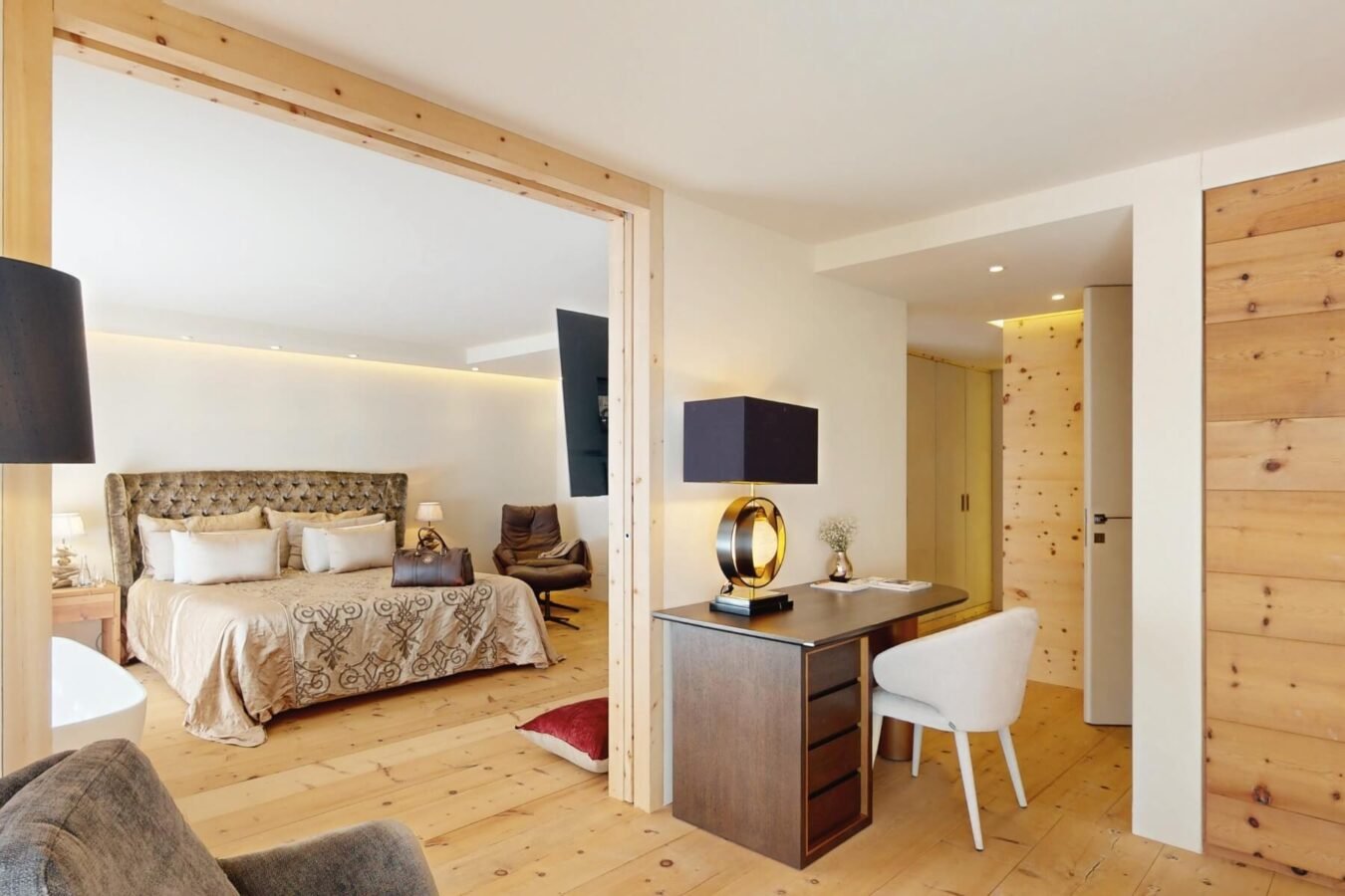 Located just 6 km from St. Moritz, this unique property features 2 master suites, 4 double bedrooms, 1 kids bedroom and plenty of cozy spaces to relax and entertain. The soothing scent of woodwork fills the chalet, creating a warm and inviting atmosphere throughout. Enjoy a billiard table, TV lounge, table tennis, a luxurious spa with a steam bath, sauna, and fitness area.