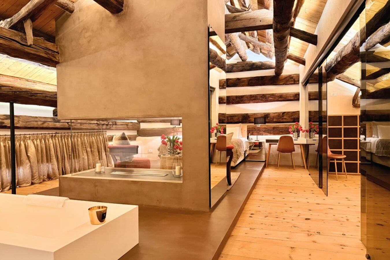 Inside, a warm wooden ambiance complements every detail, from the billiard hall and traditional Stuva with an oven to the elegant living spaces and multiple balconies with panoramic mountain views. With elevator access across 4 floors, a ski room, and outdoor lounge, this home is a perfect blend of tradition and modern luxury.