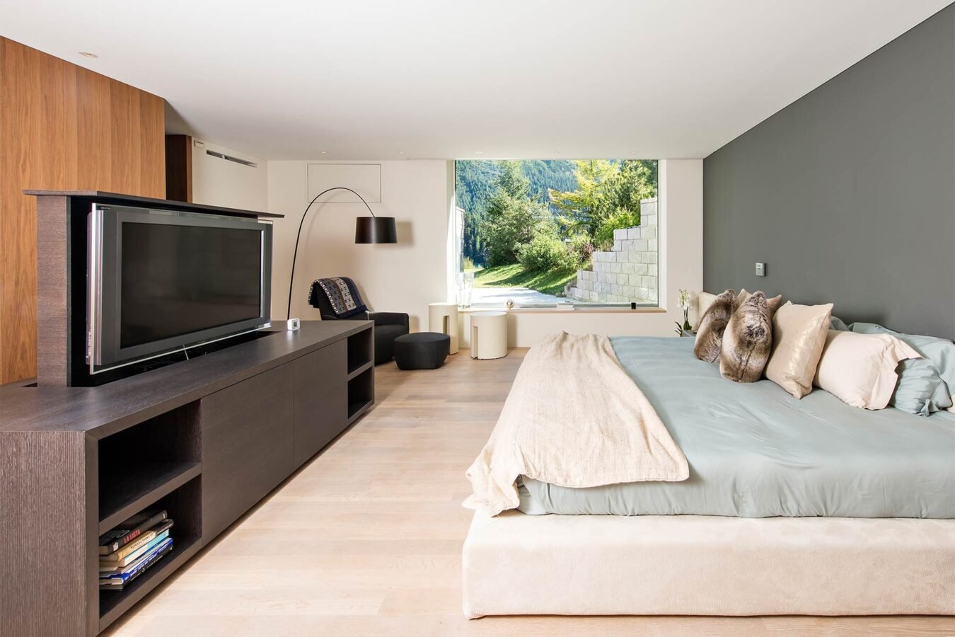 Located just 100 meters off the main shopping street of St. Moritz, the apartment building finds itself in a quiet location overlooking the beautiful mountain scenery and Lake St. Moritz. A private driveway leading away from the main street to the house, provides perfect privacy while staying in the center of the action.